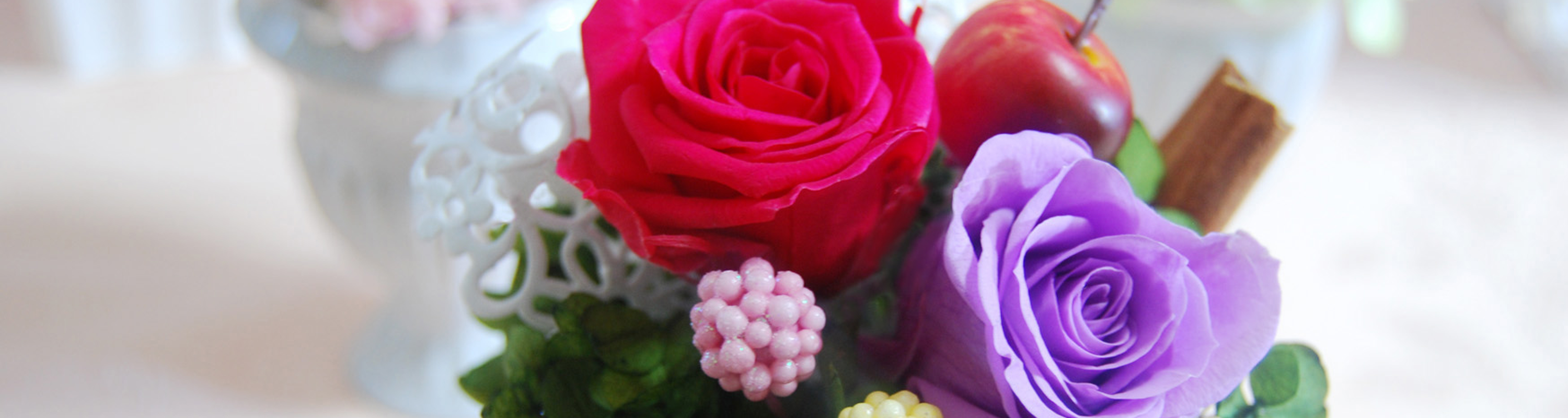 Cantik Abadi〜チャンティックアバディ〜では、プリザーブドフラワーがまったく初めての方から、本格的に技術を習得したい方に向けて、様々なレッスンをご用意しております。 まずは教室の内容・雰囲気などを知っていただき、安心してプリザーブドフラワーを楽しんでいただくためにも、2種類の体験レッスンがございます。